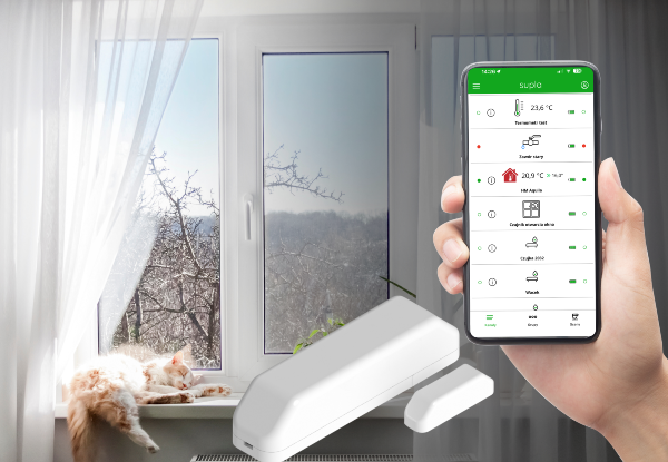 The sensor provides instant alerts when a window or door is left open, allowing quick response when leaving the house or during sudden weather changes. The SUPLA app offers an overview of all monitored points in the building, making it easy to check the status from anywhere. This functionality enhances user safety and reduces risks associated with unsecured windows.