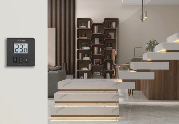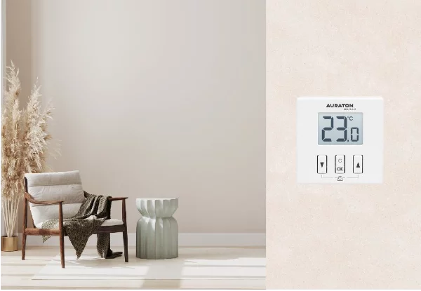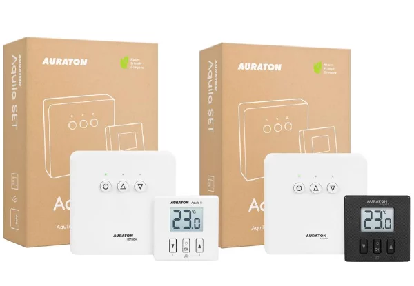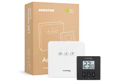 The AURATON Aquila SET (successor to the AURATON 200 RT) is a wireless daily temperature controller that includes a heating device controller. The thermostat features a function for cyclically lowering the temperature by 3°C for 6 hours each day at the same time, helping to save energy and ensure optimal thermal comfort. Additionally, the FrostGuard function prevents rooms from freezing, which is extremely useful during cold winter periods.