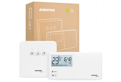 AURATON Pavo SET (successor to AURATON R30 RT) is a kit that includes an advanced, weekly, wireless temperature controller that works with the ergonomic heating device controller AURATON Fornax. The set offers precise temperature management with minute accuracy, ensuring comfort and energy efficiency in every home.