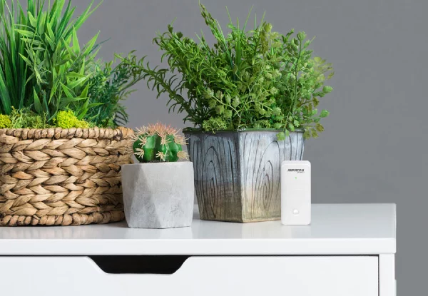 Dzięki niewielkim rozmiarom oraz klasycznej obudowie, Temperature Sensor Indoor jest niemal niezauważalny we wnętrzu. Można go zawiesić na ścianie lub położyć na półce.