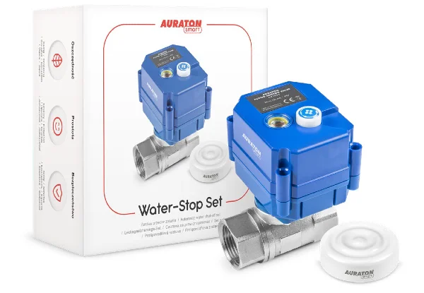 System AURATON Water-Stop Set to inteligentne i nowoczesne rozwiązanie, które skutecznie chroni Twój dom przed skutkami zalania wodą. W skład zestawu wchodzi elektrozawór Flood Sensor Valve oraz bezprzewodowy czujnik Flood Sensor, który komunikuje się z zaworem. Instalacja systemu jest wyjątkowo prosta i intuicyjna - wystarczy naładować akumulator zaworu, sparować go z jednym lub kilkoma czujnikami (dodatkowe czujniki dostępne są osobno) i zamontować zawór na głównym przyłączu wody w budynku.