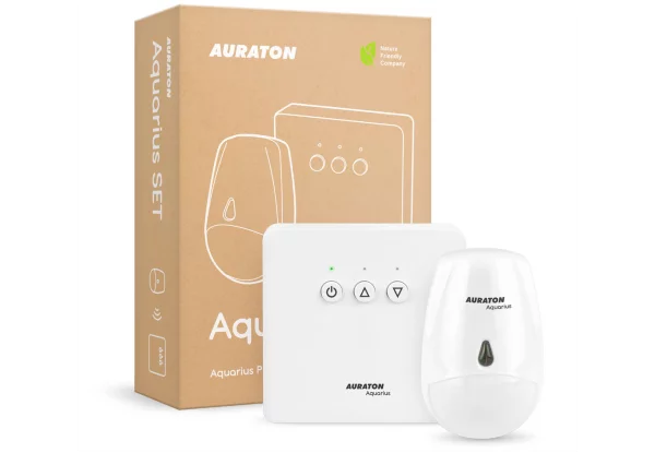 AURATON Aquarius SET (następca AURATON PIR CR) to dobrze przemyślany zestaw, w którego skład wchodzą: bezprzewodowy sterownik pompy cyrkulacyjnej w układzie ciepłej wody użytkowej (C.W.U.) AURATON Aquarius CR oraz bezprzewodowy czujnik ruchu AURATON Aquarius PIR. Zasada systemy jest prosta. Pompa cyrkulacyjna podłączona do wyjścia AURATON Aquarius CR (sterownik pompy) uruchamia się tylko wtedy, gdy czujnik ruchu AURATON Aquarius PIR wykryje aktywność użytkowników w pomieszczeniu, takim jak łazienka. Dzięki temu, system działa tylko wtedy, gdy jest to naprawdę potrzebne, co przekłada się na znaczną oszczędność energii oraz wody.