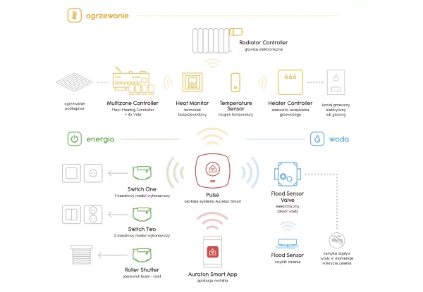 Auraton Pulse is an elegant, easy to install and use control center for your home. It allows you to manage devices in your home using the intuitive smartphone application. Pulse will tell you what’s important by changing the intensity and colour of the LED. You also don’t have to worry that in the event of a power outage you will have to configure everything again. Auraton Pulse remembers all your settings and will return to them as soon as it receives power.