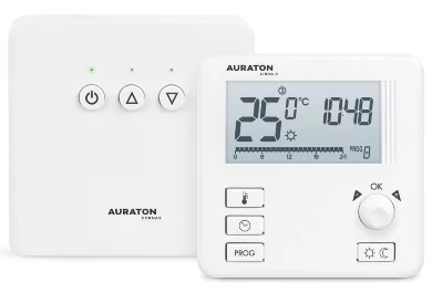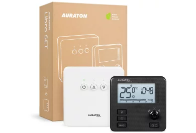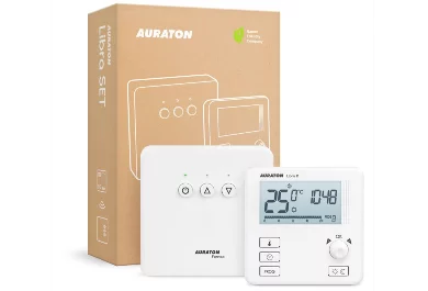 AURATON Libra SET (successor to AURATON 3021 RT) is a wireless weekly temperature controller that includes a heating device controller in the set. The controller operates in heating or cooling mode, offering versatile solutions for every season. Thanks to a unique heating cycle analysis algorithm, the device can save the receiver's operating parameters for the last 24 hours, ensuring continuity and reliability of operation even in the event of no communication with the controller.