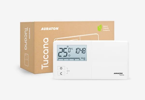 The AURATON Tucana (successor to AURATON 2025) weekly, wired temperature controller is a robust device that enables precise temperature management with hourly accuracy. Thanks to 7 independently configurable programs and 4 adjustable temperatures (day, night, anti-freeze, holiday), the user has full control over the temperature in their home. AURATON Tucana also offers PWM operating mode, which minimizes temperature fluctuations by cyclically switching the heating device on and off. Thanks to this algorithm, the user can enjoy not only thermal comfort but also energy savings.