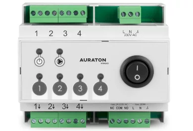 "AURATON Virgo (the successor to the AURATON 4D PRO). This wired control strip is designed for underfloor heating actuators and is intended for installation in electrical cabinets. The AURATON Virgo supports 4 heating zones, with the option to connect up to 3 AURATON actuators per zone. This allows for precise temperature control in different areas of your home. Additionally, each zone can be monitored using a wired AURATON temperature controller, providing complete control over your heating system. By installing it with AURATON Vela actuators, you're guaranteed a 10-year warranty on the control strip!
