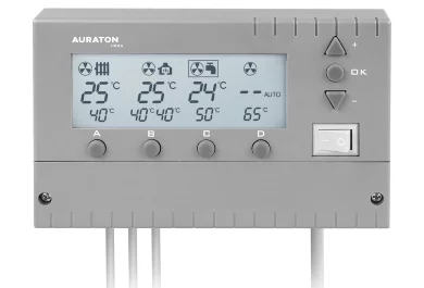 The AURATON Ursa controller is capable of simultaneously controlling up to three central heating (CH) pumps and one domestic hot water (DHW) pump, as well as a fan for a solid fuel furnace. Auraton Ursa is also adapted to control a 3-way switching valve. The multi-functional controller can also be used to control CH pumps in a water jacket fireplace system. Moreover, it is perfect as a blower and temperature controller in home smokehouses. AURATON Ursa is a professional controller for special tasks!